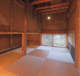 築130年、土壁の風情が建物の歴史を彷彿とさせる農のための「小屋」をリノベーションしたお部屋です。
