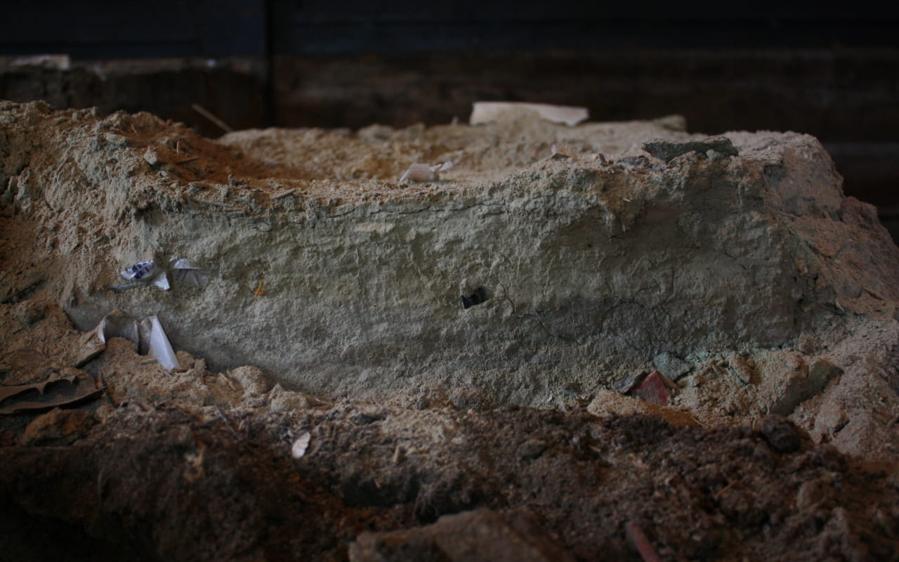 楢山集落においては、敷地内の池に入って制作されたサイトスペシフィックな作品が仕込まれており、場所の絶対的な価値を高めることに寄与しており、土地の記憶を顕在化させてくれる。本作においては、様々な場面でその創造が散りばめられている。