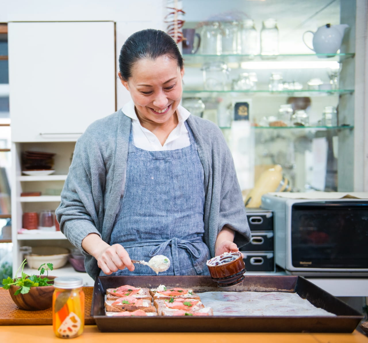 農家さんから仕入れる旬の素材の持ち味を生かす料理を得意とし、家庭でも手軽に作れるやさしいおやつレシピの連載やアレルギー対応メニューの研究開発なども行う。その他、キッチンカー運営、ケータリング、2018年からは、規格外農産物をいかし、地域社会の中でおいしい循環の仕組みをつくる、「農×福×食連携『rucoto(ルコト)』」をスタート。豊かな自然を未来に残すために、食の分野から何ができるのか日々奮闘中。